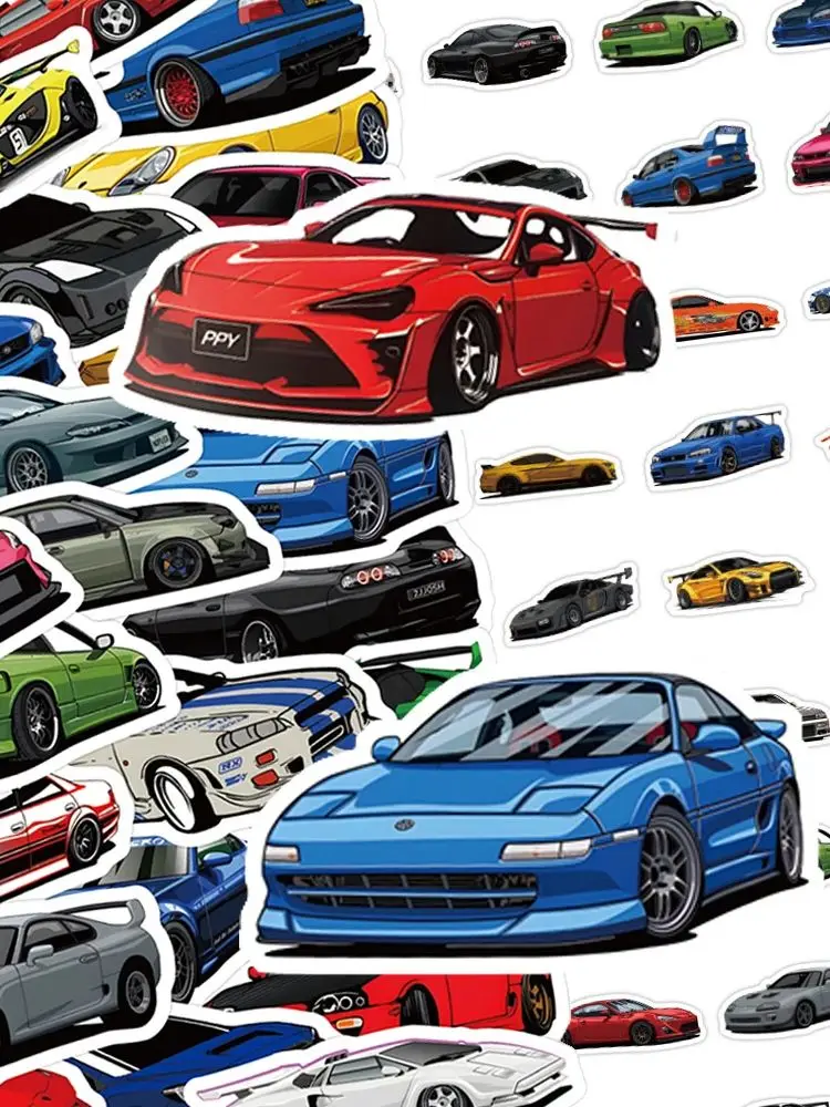 Questions fréquentes sur 10/30/60 pièces classique Cool Supercar JDM autocollants dessin animé course décalcomanies bricolage moto cahier téléphone vélo PVC Graffiti autocollant jouet