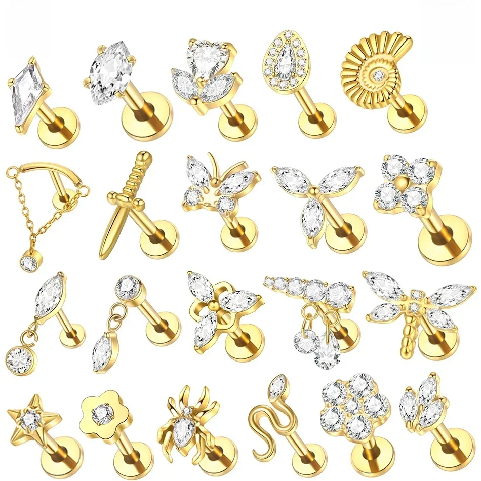 Le 1pc titane étoile fleur Tragus Piercing dos plat zircon cubique boucles d'oreilles Helix Cartilage Labret Piercings bijoux dans son contexte de marché en 2026
