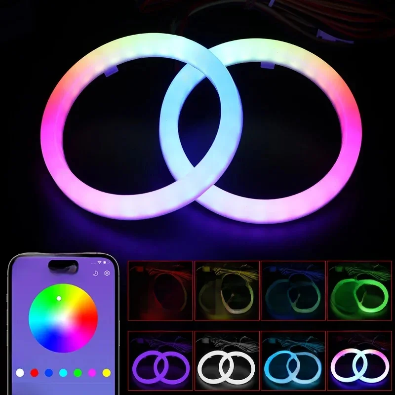 Le 2 pièces RGB coton LED yeux d'ange Halo anneaux 60mm 70mm 80mm LED phares lampes pour voiture UTV moto DRL yeux APP contrôle dans son contexte de marché en 2026