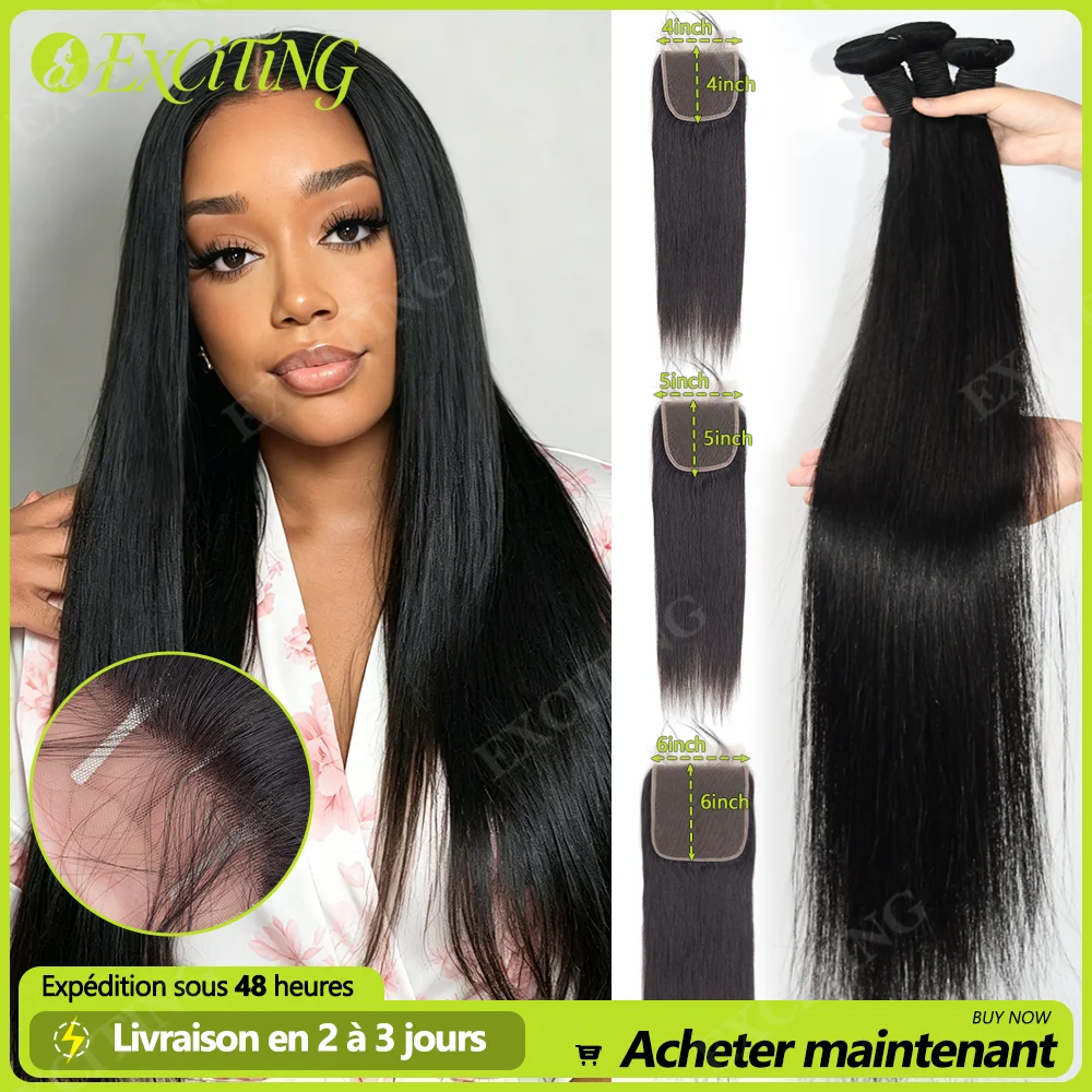 22inch Straight Human Hair Bundles with 4x4/5x5/6x6 Lace Closure And Bundles Brazilian Unprocessed Raw Hair Extensions for Women — Meilleur prix 2026