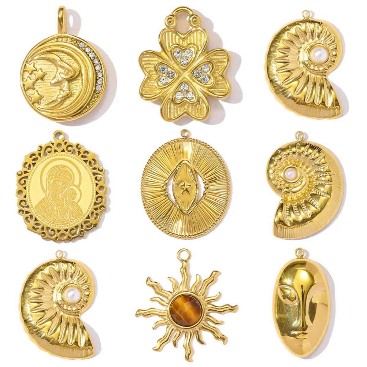 Retrouvez 3 pièces/lot en acier inoxydable sainte mère masque abstrait collier pendentif strass trèfle bricolage charme femmes conque soleil lune bijoux au meilleur prix sur Compiral.fr. 1 offres mises a jour en temps reel. Des 3,09 €.
