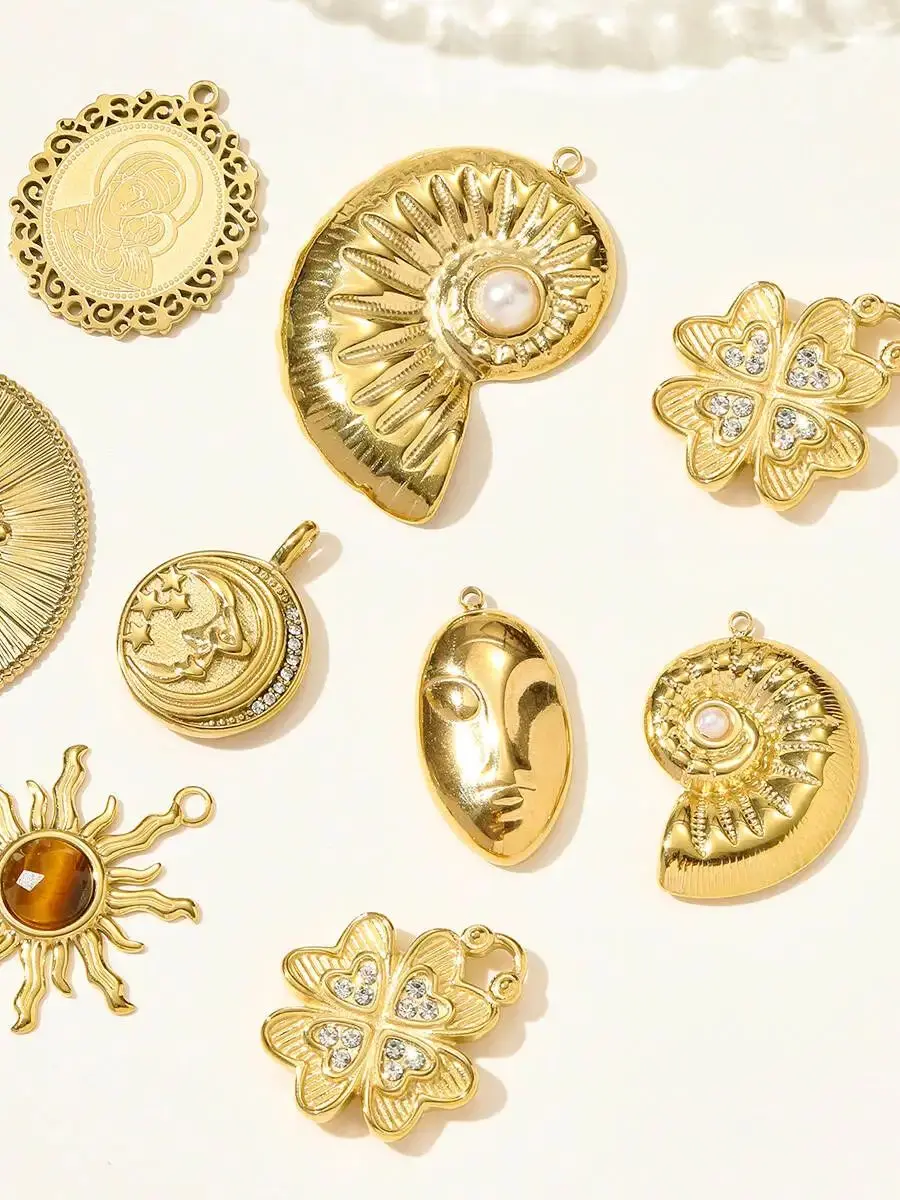 Analyse technique du 3 pièces/lot en acier inoxydable sainte mère masque abstrait collier pendentif strass trèfle bricolage charme femmes conque soleil lune bijoux