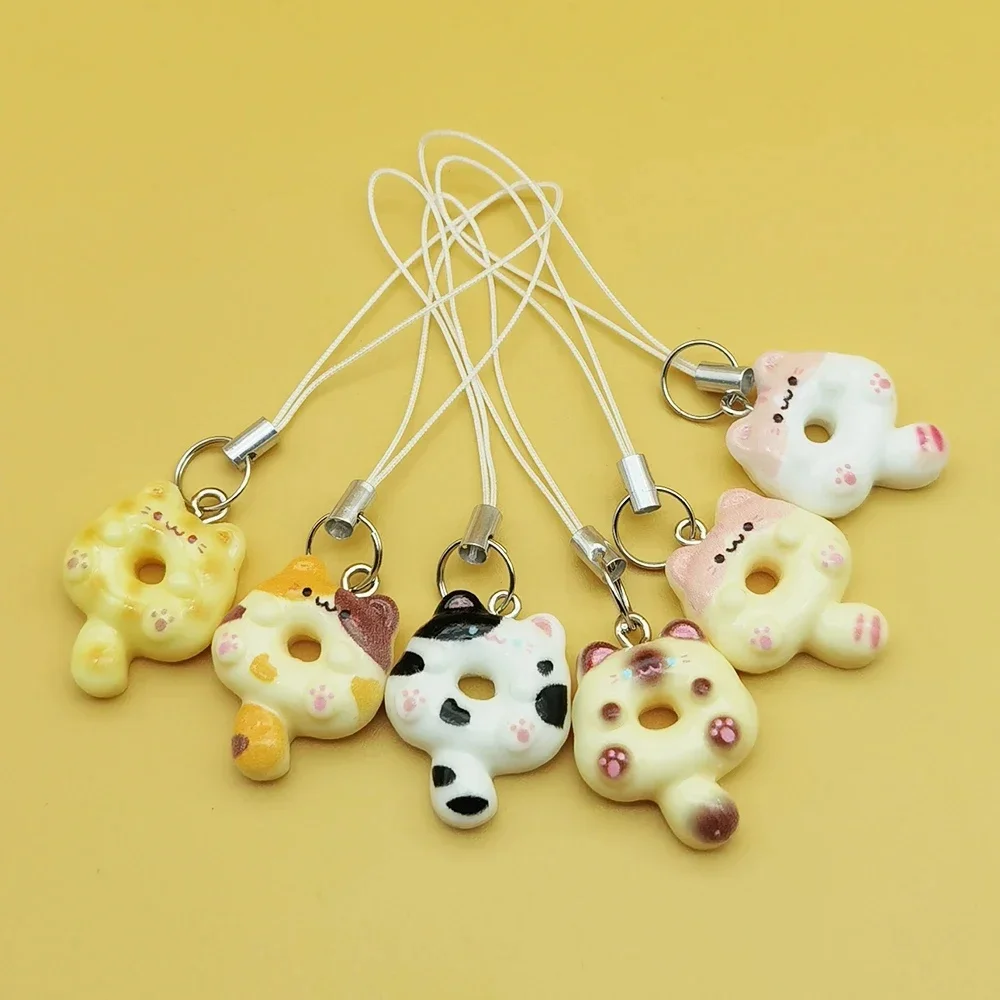 XMSJ Adorable chaton beignet chat téléphone breloque sangle porte-clés mignon lanière étui de téléphone portable pendentif pour Airpods étui porte-clés cordon