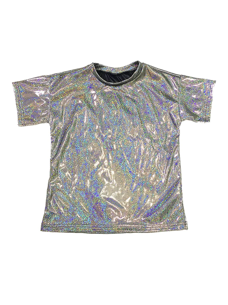 Adulte enfants à manches courtes brillant métallique Hip Hop danse Costume T-Shirt brillant ample Jazz fête Dancewear femmes haut Streetwear garçon