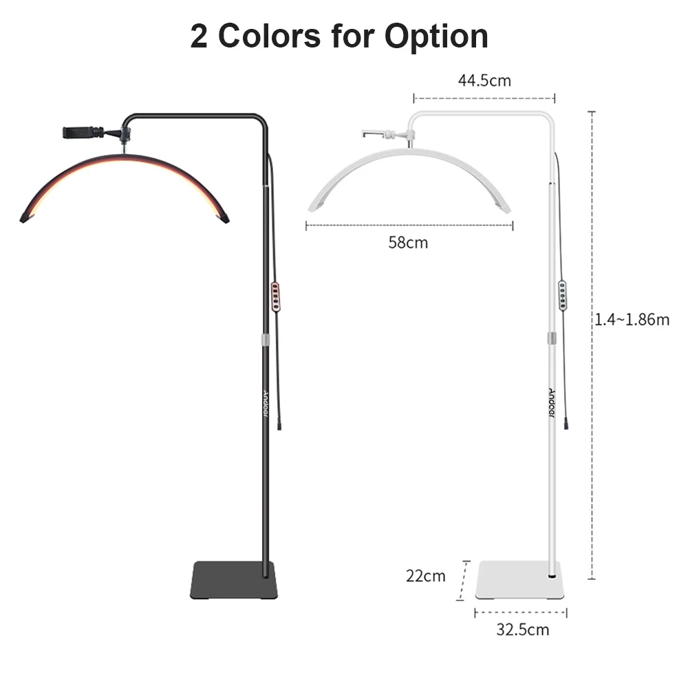 Andoer HD-M6XR 36W sol LED lumière vidéo demi-lune en forme de lumière de remplissage réglable avec 5600K lumière blanche et lumière rouge 186cm métal de Andoer est disponible chez 1 marchands. Comparez et trouvez le meilleur prix. A partir de 52,39 €.