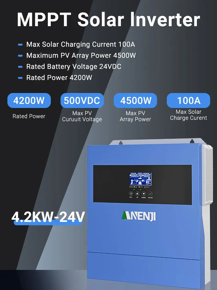 ANENJI propose ANENJI 2KW 4KW onduleur solaire hybride 24V onde sinusoïdale Pure onduleur solaire photovoltaïque 230VAC 100A MPPT Charge solaire PV 500V chez 1 revendeurs. Utilisez notre comparateur pour le meilleur prix. Des 192,03 €.