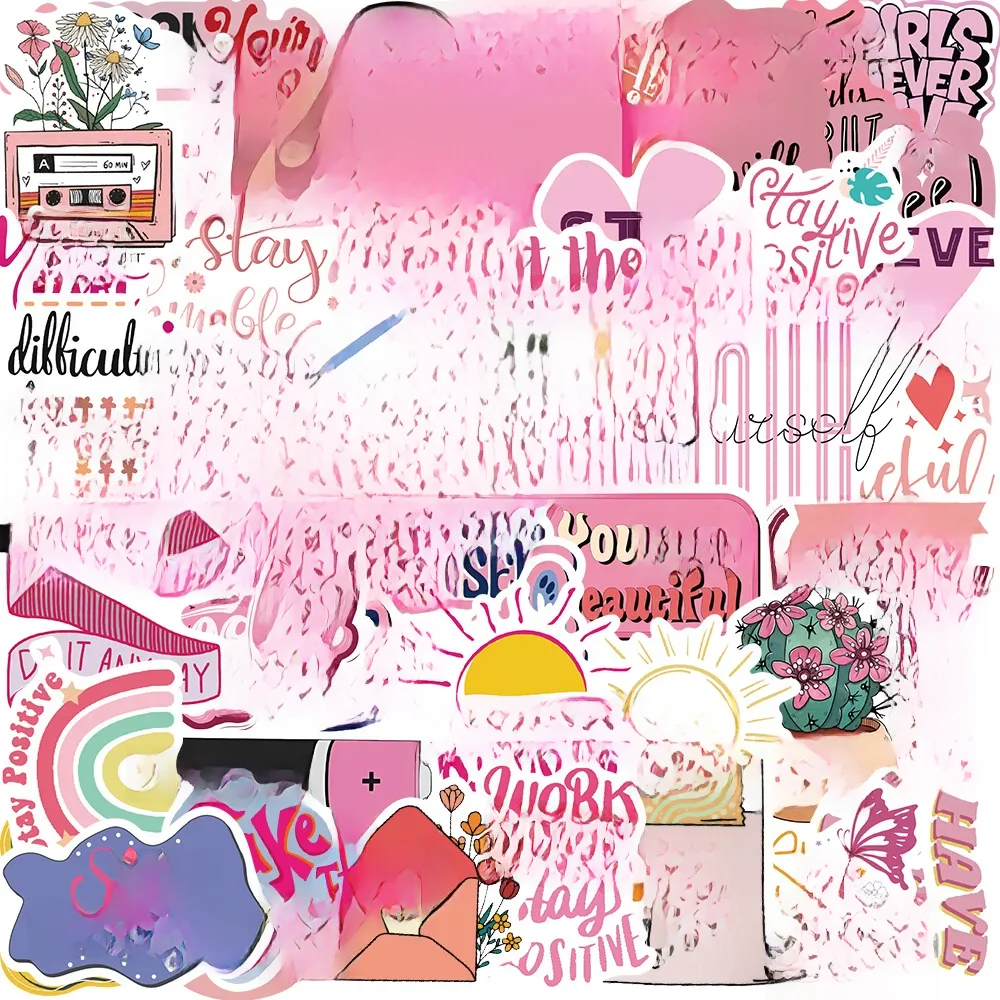 Autocollants Graffiti de dessin animé rose, 50 pièces, Phrases de motivation, pour téléphone, guitare, ordinateur portable, valise, bouteilles d'eau, autocollant étanche