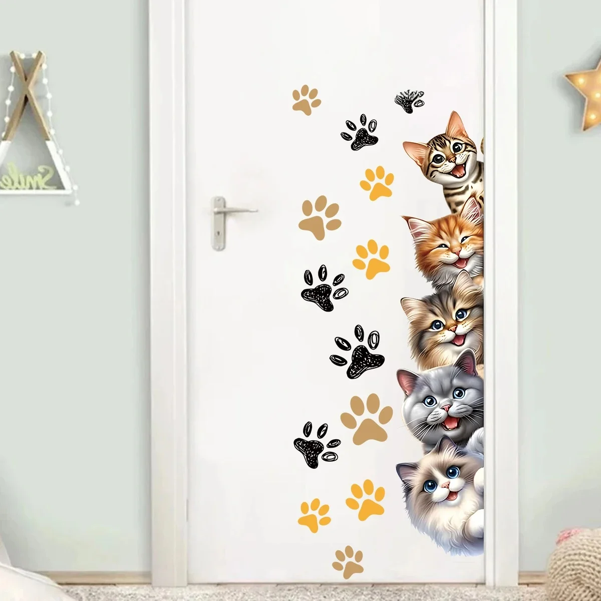 Questions fréquentes sur Autocollants muraux aquarelle chats mignons multiples, 1 pièce, pour porte, décoration de maison, arrière-plan de salon, décoration de chambre à coucher