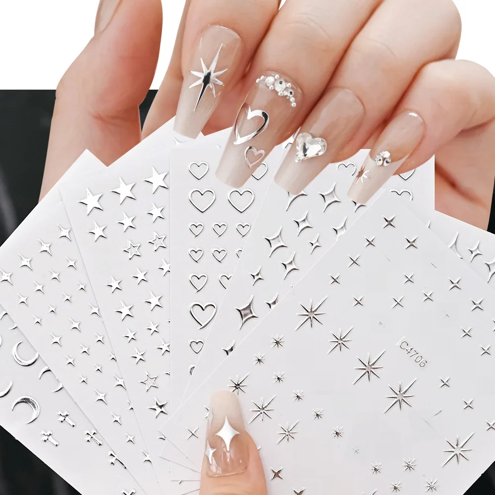 Autocollants pour ongles en métal argenté, 6 feuilles, étoiles métalliques 3D, autocollants pour Nail Art, autocollants auto-adhésifs pour Nail Art, chaîne en métal, cœur de MAFANAILS est disponible chez 1 marchands. Comparez et trouvez le meilleur prix. A partir de 1,61 €.