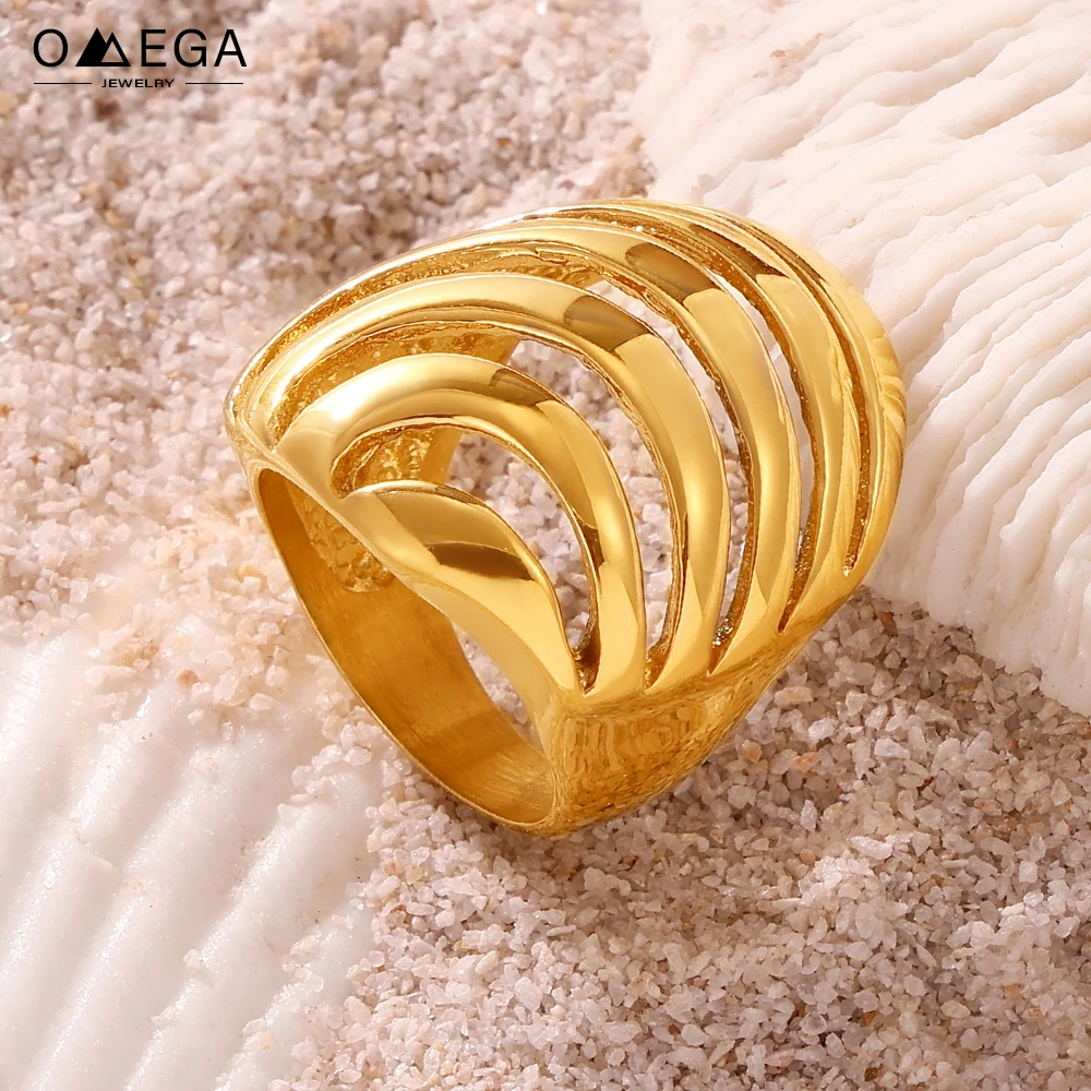 Bagues géométriques creuses en acier inoxydable pour femmes, plaqué or 18 carats, étanche, sans ternissement, grosse bague esthétique pour femmes