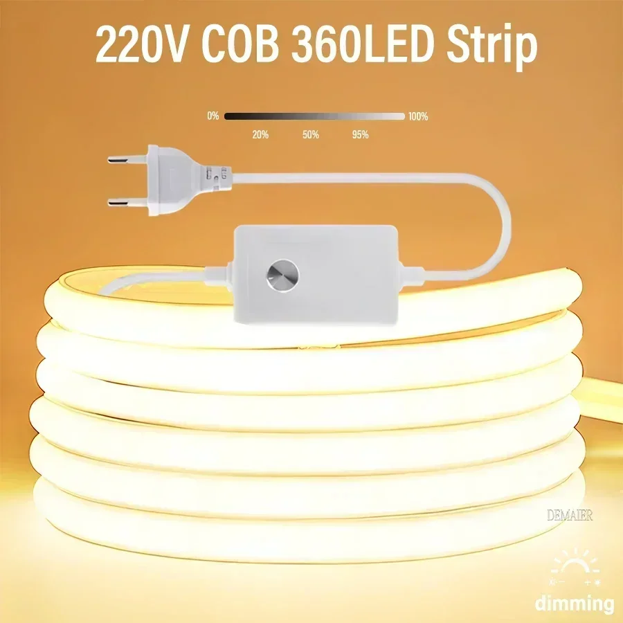 OUJELR propose Bande lumineuse LED COB 110V 220V, Super lumineuse, 360 diodes/m, étanche, avec interrupteur d'alimentation EU/US, lampe d'extérieur Flexible, 1M-100M chez 1 revendeurs. Utilisez notre comparateur pour le meilleur prix. Des 7,39 €.