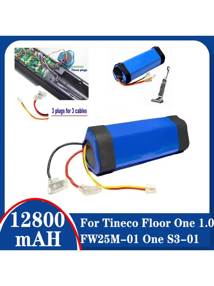 Batterie Li-ion Qriginal 12,8 ah pour batterie d'aspirateur Tineco FLOOR ONE S3/FW25M/HF20E-01, batterie Li-ion à Charge rapide 6 vendue