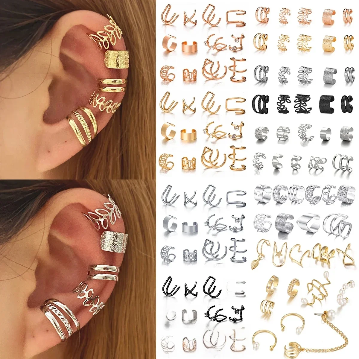 Questions fréquentes sur Boucles d'oreilles à Clip en forme de feuilles pour femmes, couleur or Rose, créatives, simples, manchette d'oreille en C, Non perçantes, ensemble de bijoux tendance, cadeau, 10 pièces