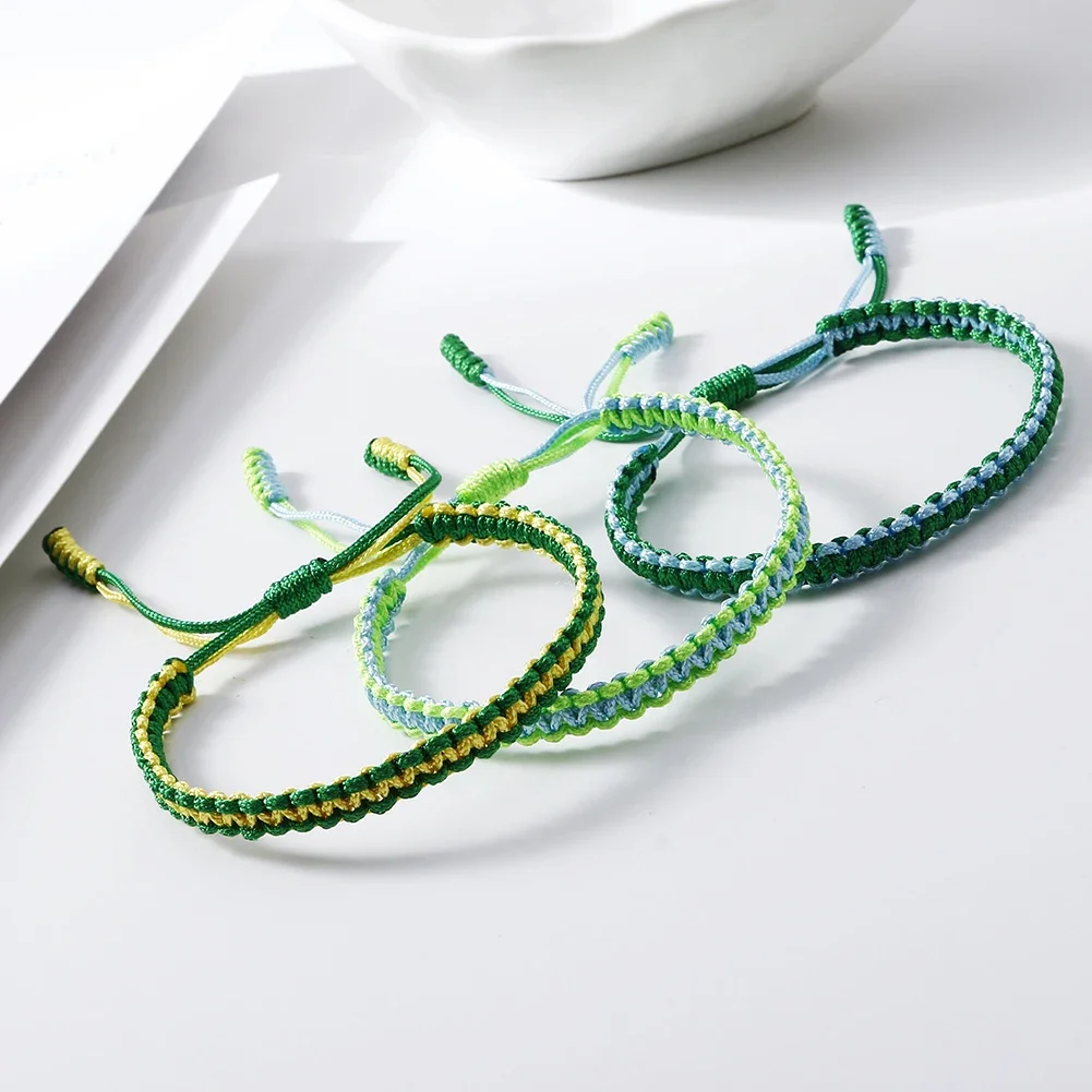Bracelets porte-bonheur vert bouddhiste tibétain, corde à nœud tressée à la main, réglable, bijoux de poignet, cadeau pour femmes et hommes