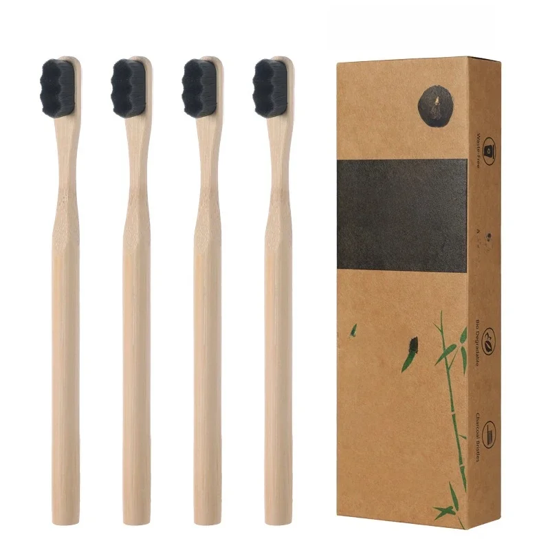 miqmi Brosse à dents en bambou pour adulte, brosse à dents biodégradable à poils souples, brosse à dents à poils naturels doux 10000, hygiène buccale, 1 pièce/4 pièces