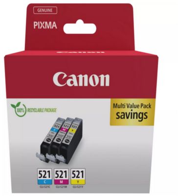 Comparez les prix de Cartouche d'encre CANON Pack Multipack 3 Originales CLI-521 Couleurs (CMY) - 2933B015 et économisez sur votre achat. 1 offre disponible chez nos marchands partenaires. À partir de 42,99 €.