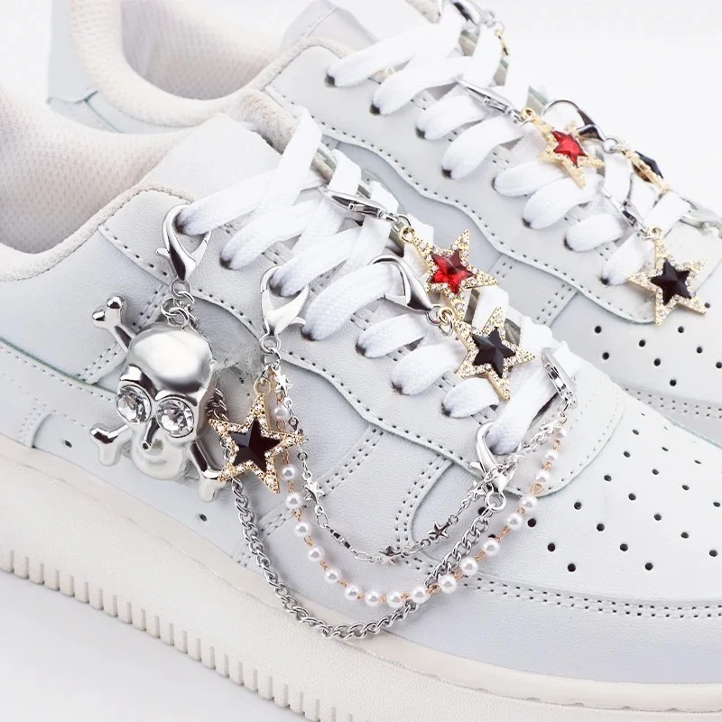 Chaîne de chaussures luxueuse en diamant, 1 pièce, bricolage, cœur, étoile, perle, Punk, Original, clouté détachable, pentagramme, accessoires de chaussures, bijoux Penda
