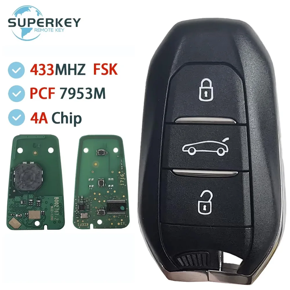 Clé de voiture télécommandée intelligente 3 boutons 433MHZ puce PCF7953 4A pour Peugeot 208 308 3008 508 5008 Citroën C4 C4L DS4 DS5 Keyless Go