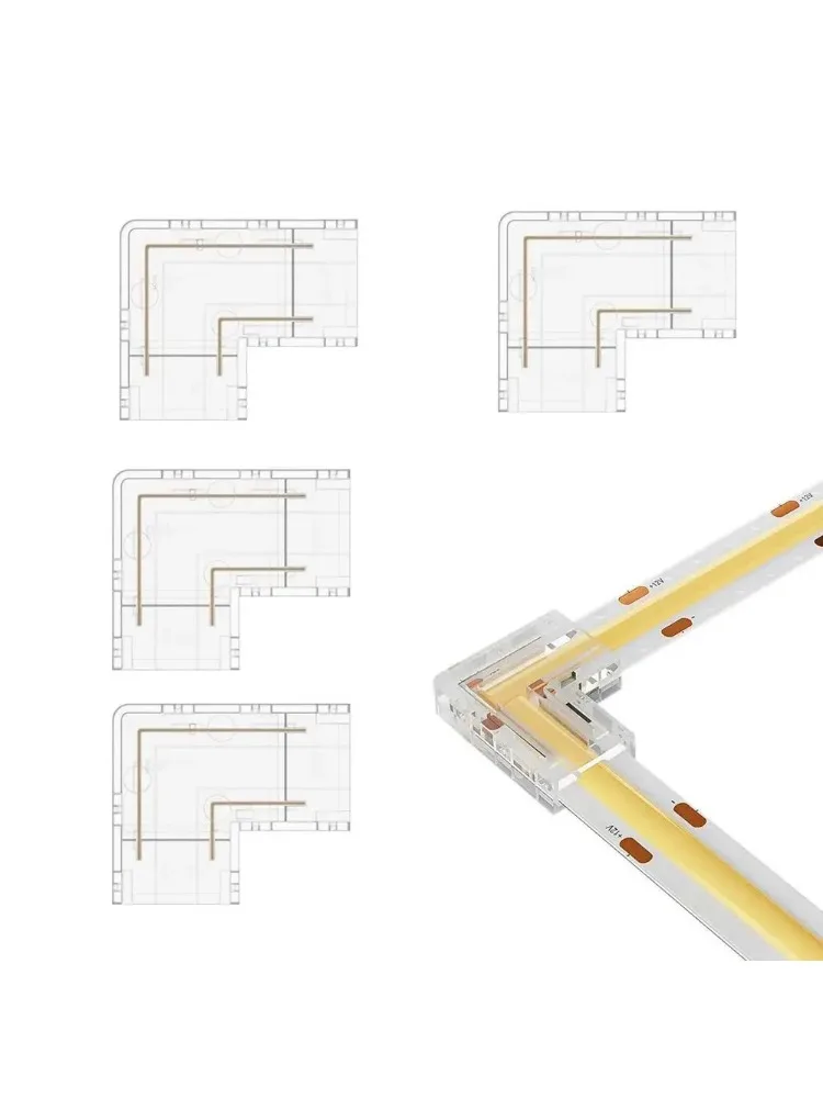 MJJC propose Connecteurs LED COB 90 degrés en forme de L, coin, 5/8/10 mm, sans soudure, pour bandes lumineuses CCT FCOB RGB, connecteur 2/3/4 broches, bande à bande chez 1 revendeurs. Utilisez notre comparateur pour le meilleur prix. Des 2,86 €.