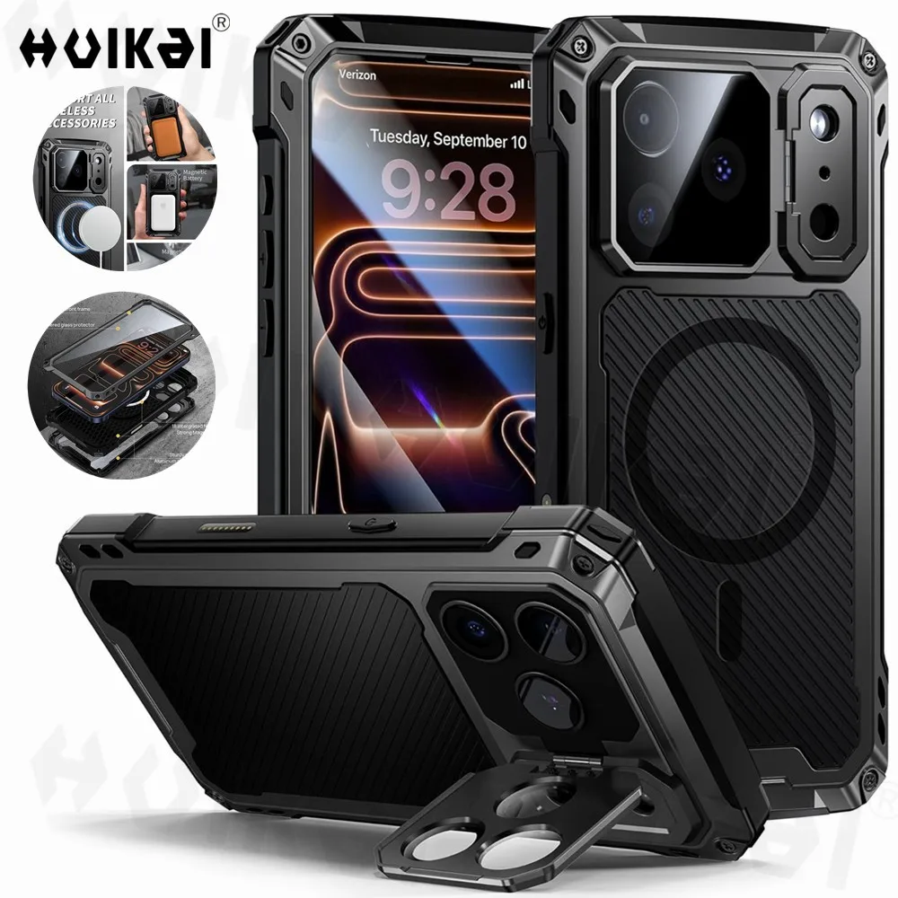 Comparez les prix de Coque pour iPhone 17 Pro Max 16 Pro 15 métal robuste verre trempé protecteur d'écran caméra Protection armure MagSafe couvertures magnétiques et economisez. 1 offres disponibles chez nos marchands. A partir de 24,19 €.