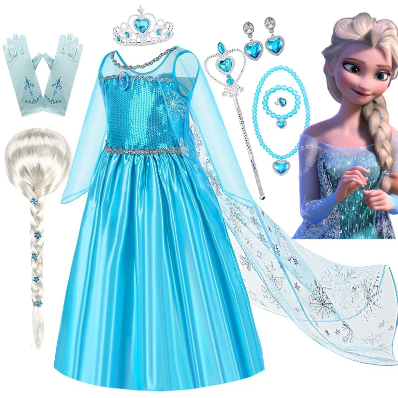 Costumes Disney reine des neiges Elsa pour filles, robe de princesse Elsa entièrement longue, Cape en maille, robe de fête de carnaval, bal — Meilleur prix 2026