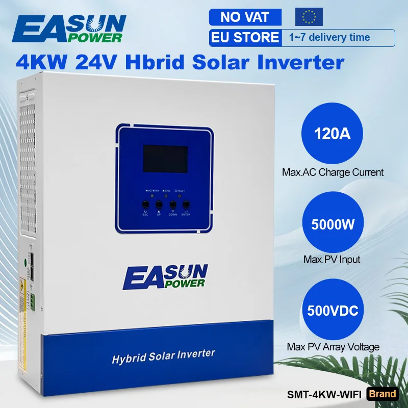 Vous cherchez EASUN Onduleur Solaire Hybride 4KW Hors Réseau à Onde Sinusoïdale Pure, Onduleur MPPT 24V 220V 120A, Chargeur Solaire pour Photovoltaïque PV 500VDC au meilleur prix? Compiral.fr compare 1 offres pour vous. Des 185,45 €.