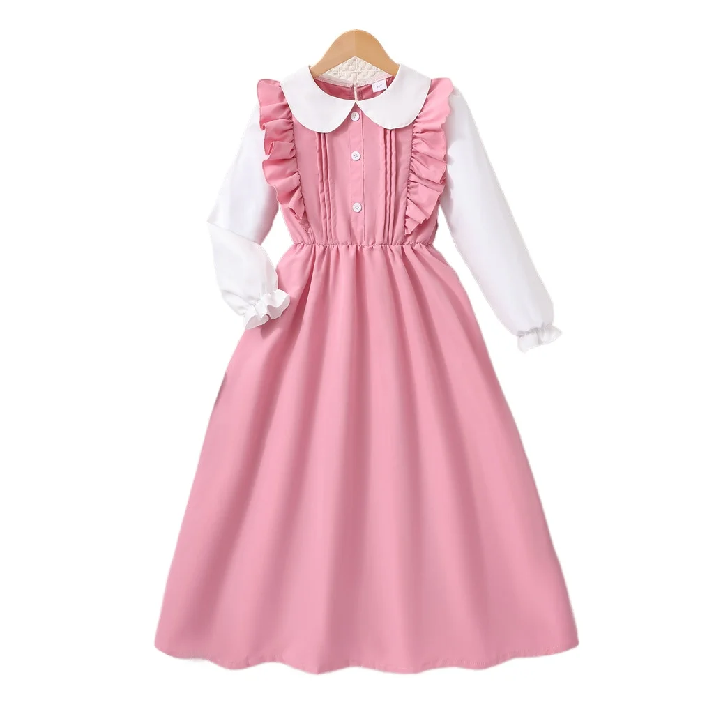 yeedison Enfants fille robe rose à manches longues été automne école enfants robes mode fête d'anniversaire adolescentes filles robe 7 8 9 10 11 12 ans