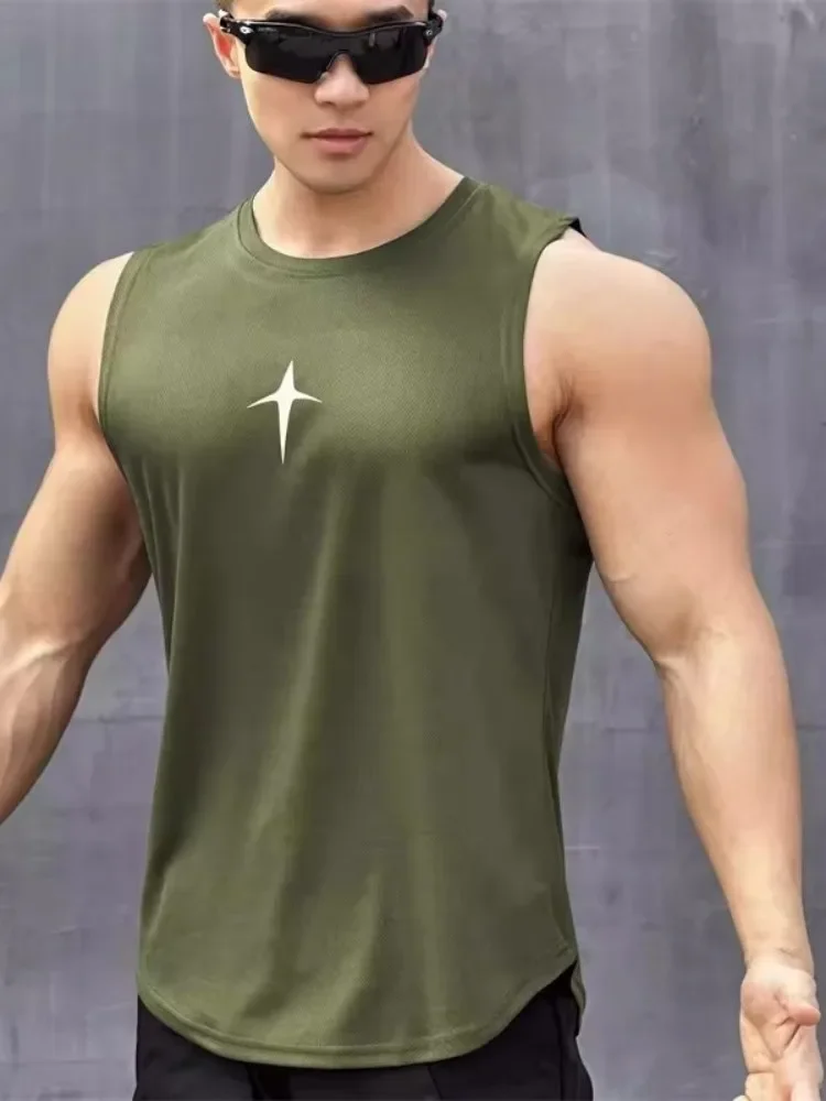 Été gilet sans manches sport de plein air débardeur course fitness maillot de corps séchage rapide col rond gymnase T-shirt hommes dessus respirants