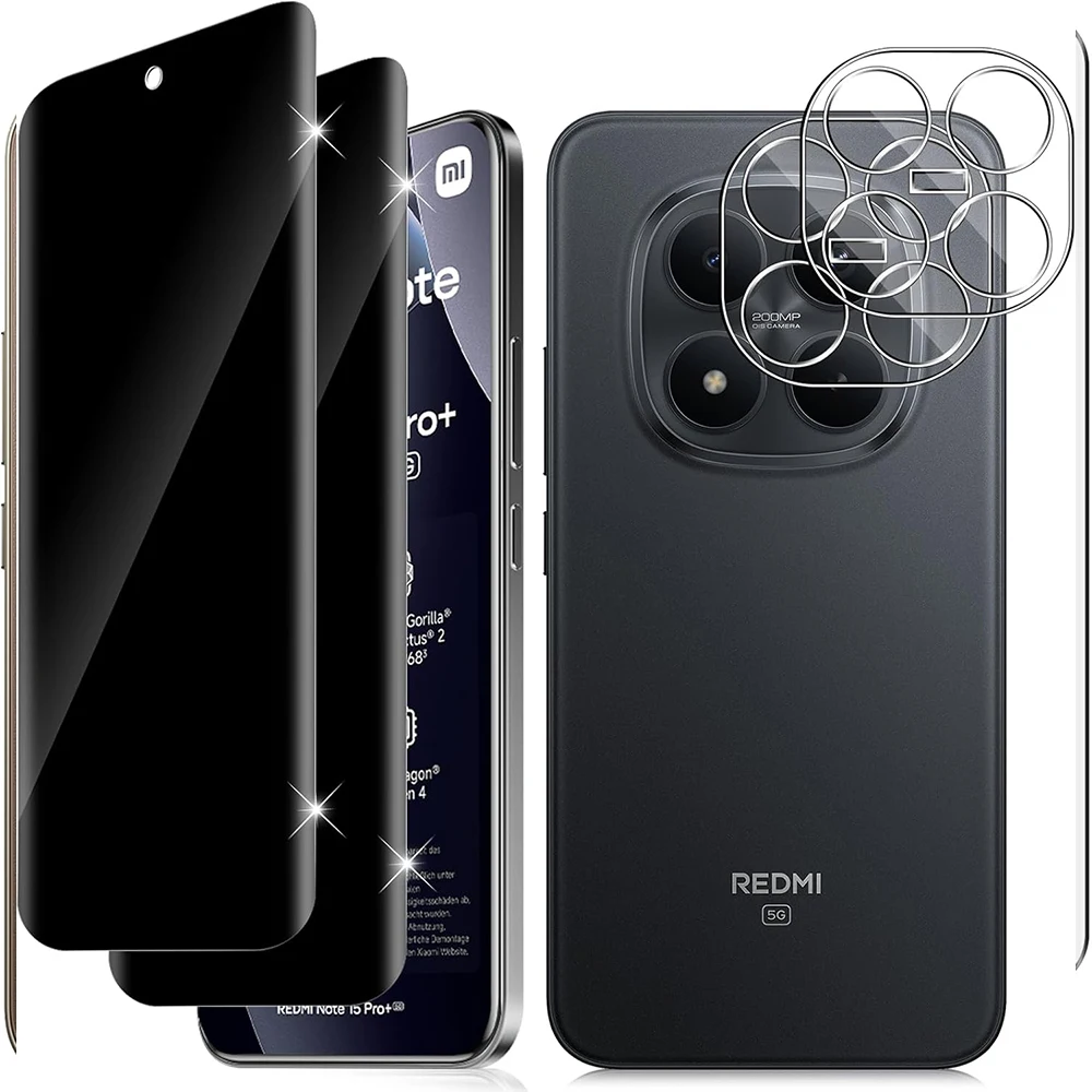 Film de protection d'écran en verre trempé incurvé 3D anti-espion pour objectif d'appareil photo Xiaomi Redmi Note 15 5G Pro Plus Poco M8 Pro — Meilleur prix 2026