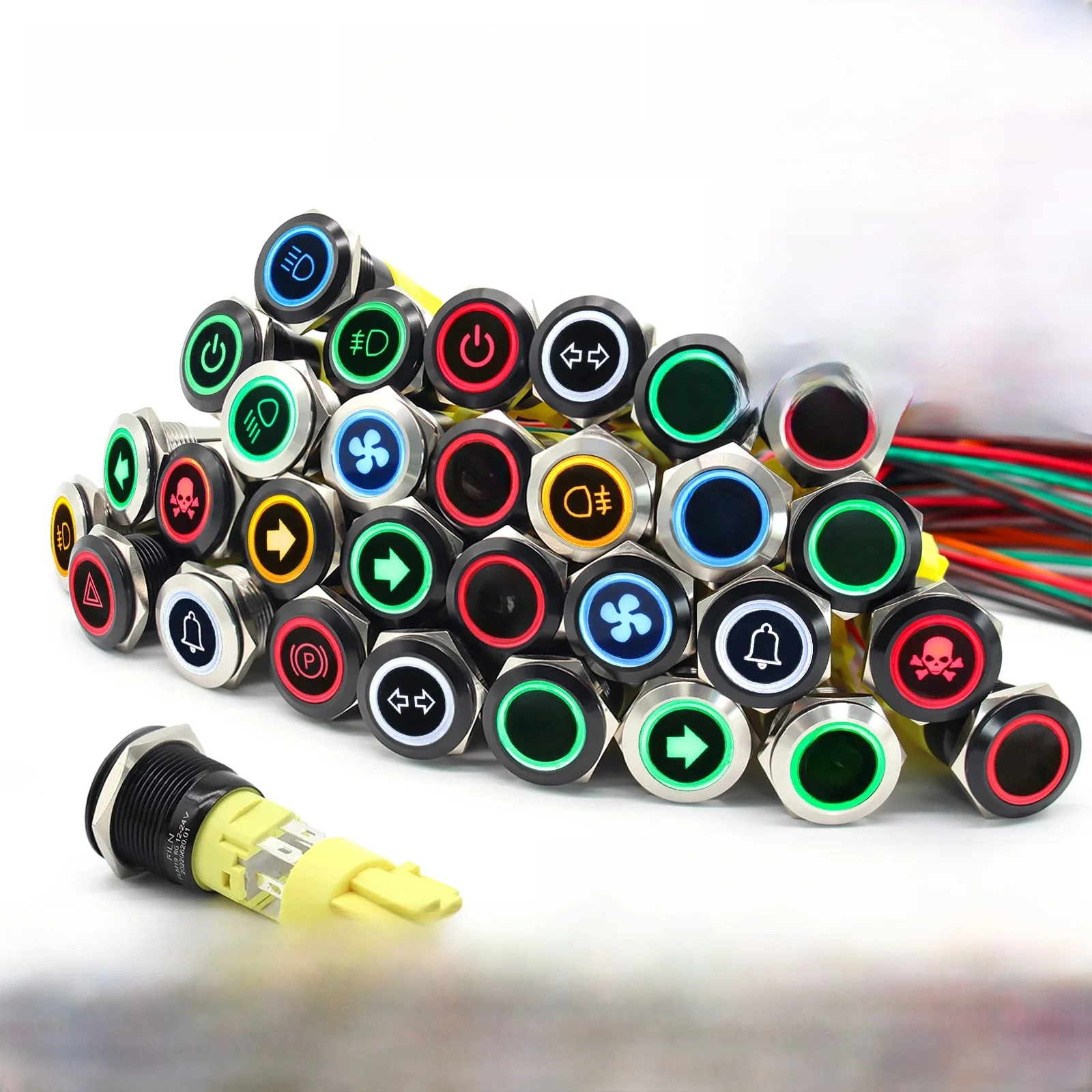 FILN 19mm 12V 24V LED acier inoxydable noir métal bouton poussoir interrupteur tableau de bord symbole d'avertissement ON OFF voiture course interrupteur de FILN est disponible chez 1 marchands. Comparez et trouvez le meilleur prix. A partir de 5,09 €.