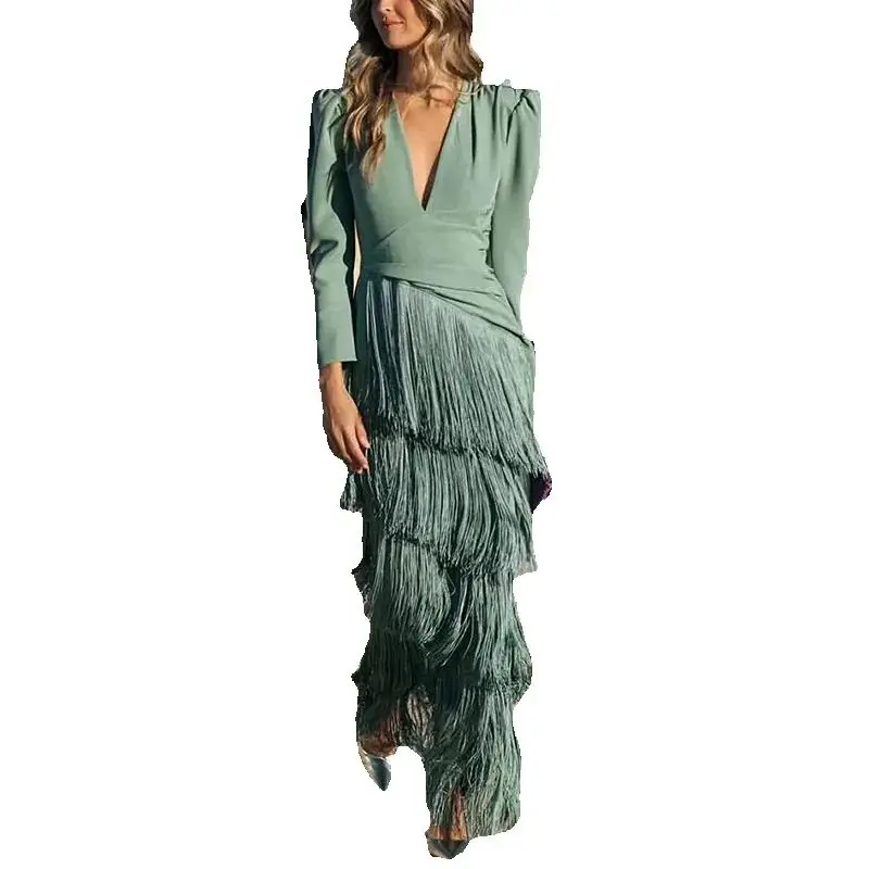 Retrouvez Français élégant col en V profond mince robes de bal 2025 printemps solide épissé gland longue robe femme à manches longues nouvelle automne Maxi robe au meilleur prix sur Compiral.fr. 1 offres mises a jour en temps reel. Des 25,39 €.