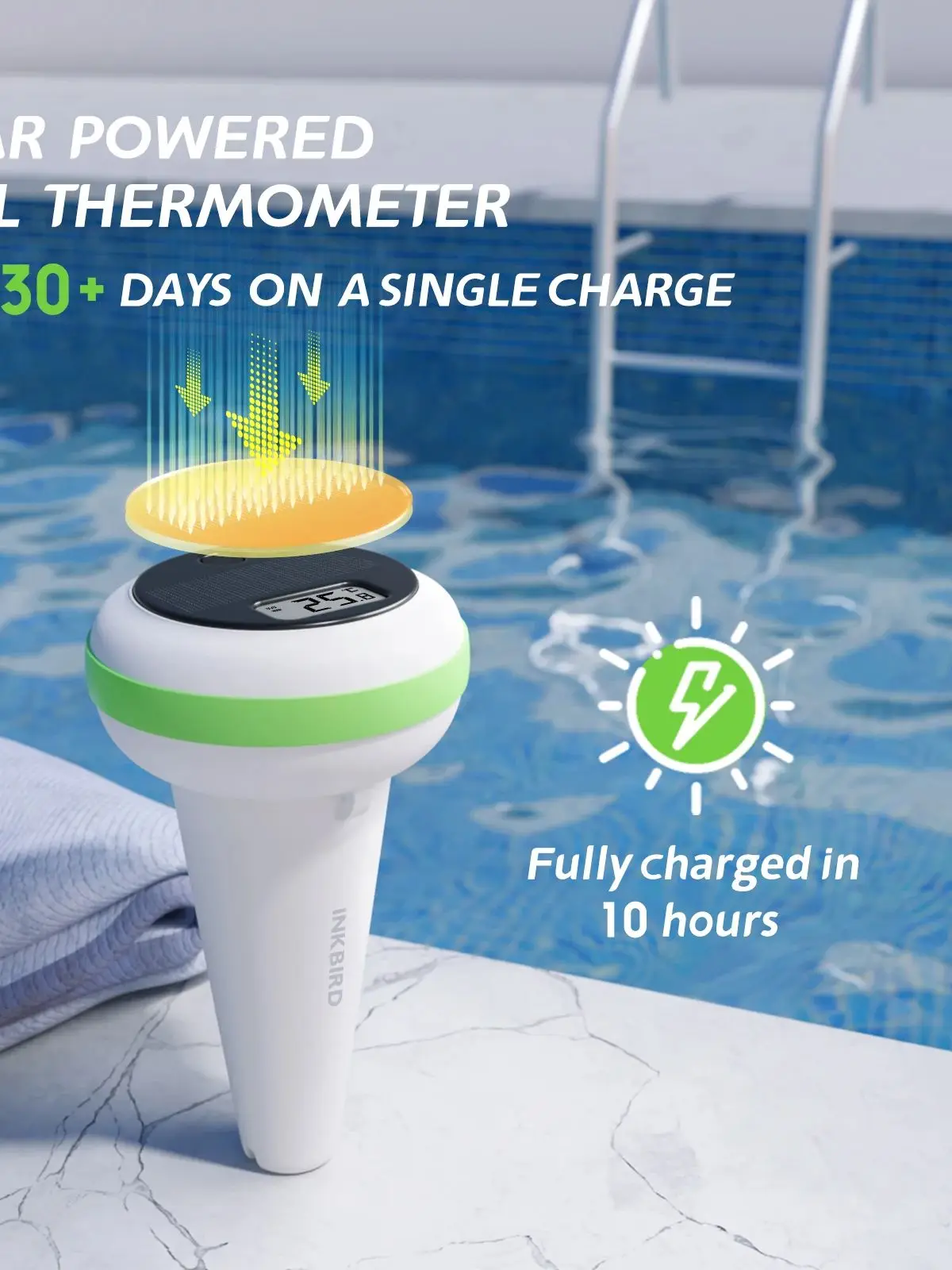 INKBIRD IBS-P03R Nouveau Solaire Sans Fil Piscine Therye.com avec Récepteur 300m Ultra Long Transmission Therye.com pour Hot Tubs,Spas