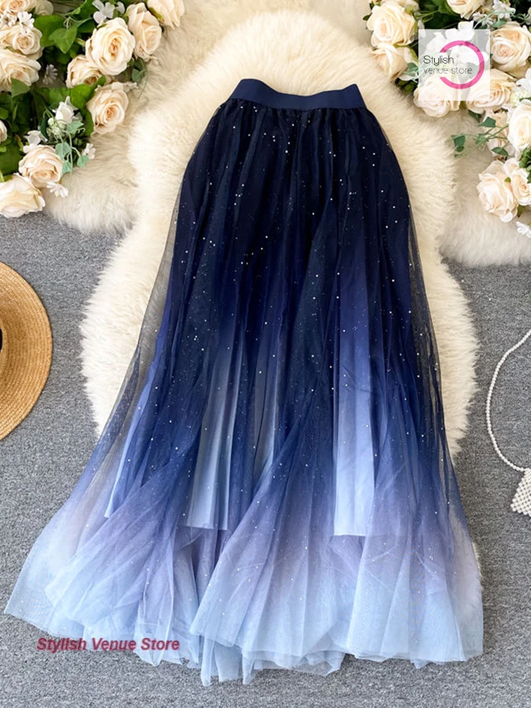 Jupe en gaze dégradée de ciel étoilé français pour femme, nouvelle mode printemps et été, taille haute, jupe plissée en mousseline de soie à paillettes de JLPMLDPT est disponible chez 1 marchands. Comparez et trouvez le meilleur prix. A partir de 14,89 €.