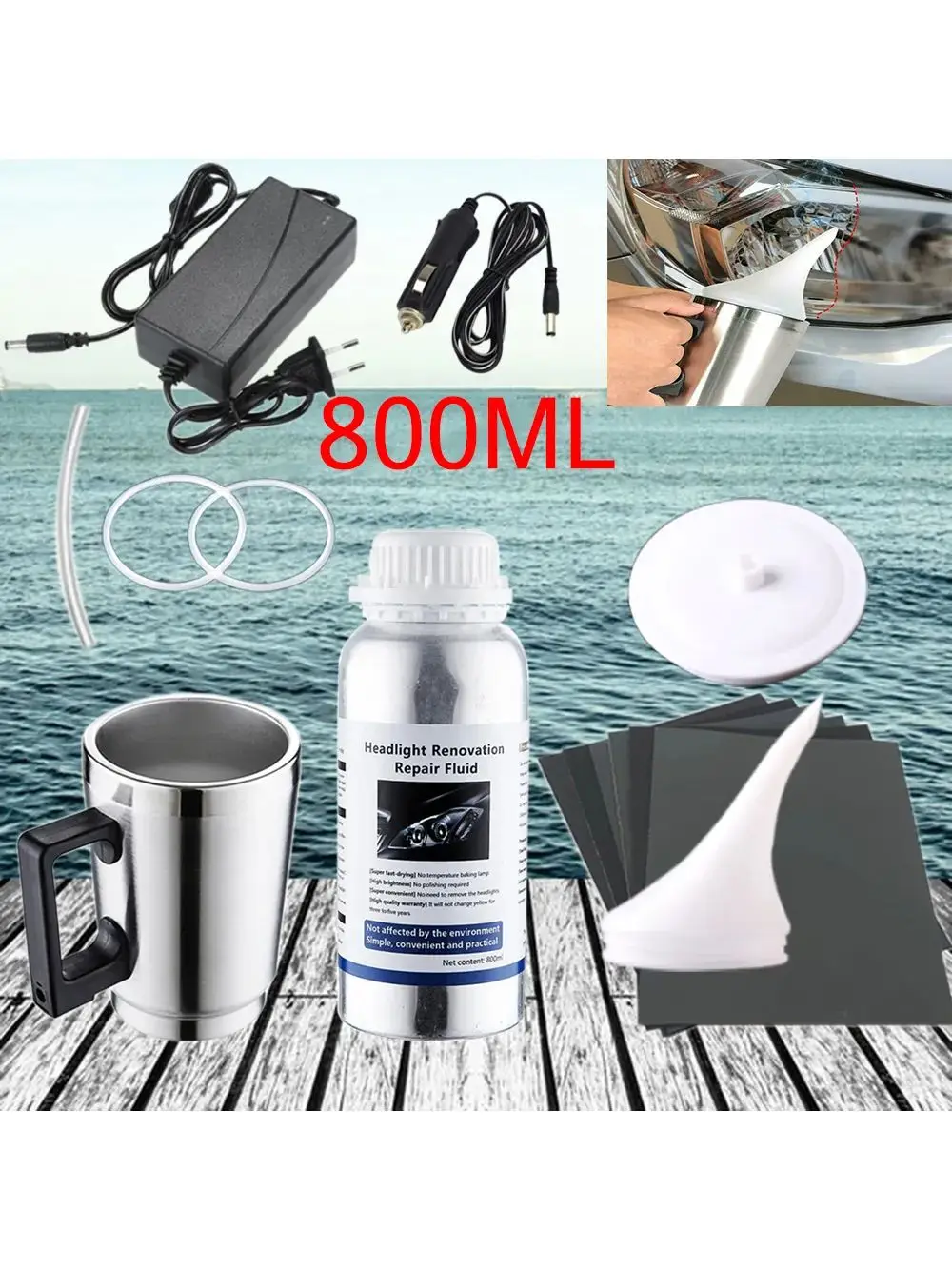 Analyse technique du Kit de polissage de rénovation de phares de voiture, Kit de polissage chimique de phares, outil de soins automobiles, ensemble d'outils de voiture en polymère liquide de 800ML