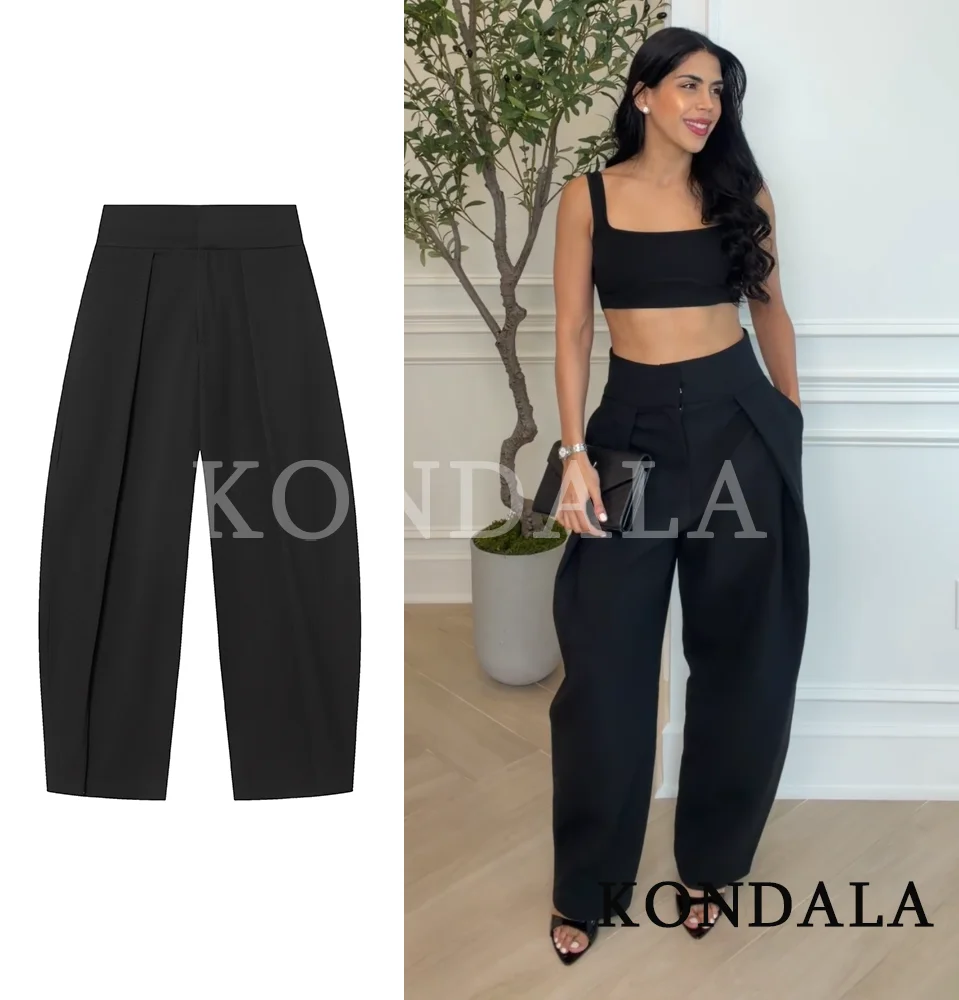 Présentation du KONDALA Pantalon Plissé Élégant pour Femme, Coupe Ballon Minimaliste Tendance, Nouvelle Collection Printemps 2026, Chic et Décontracté