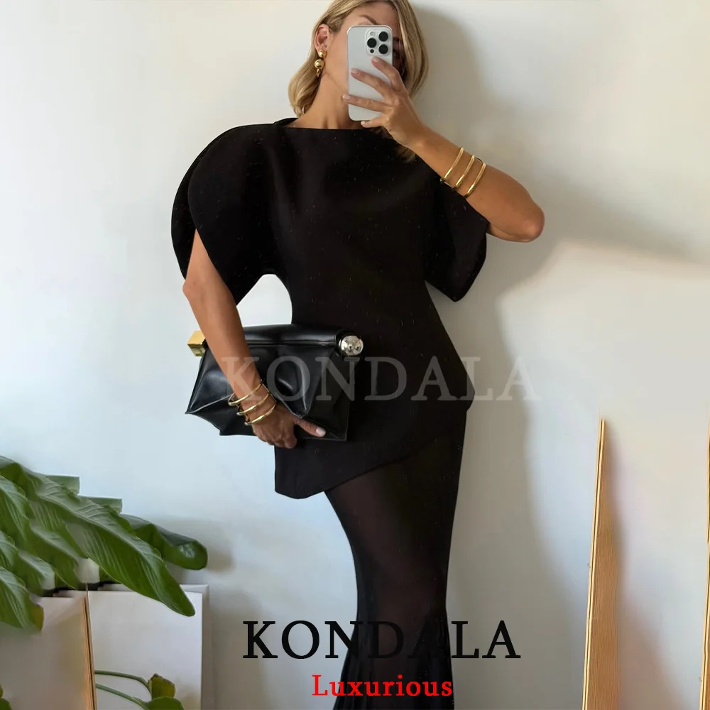 KONDALA KONDALA T-shirts noirs décontractés et chics à manches courtes bouffantes pour femmes, hauts droits à col rond et manches courtes, mode printemps-été 2026 pour filles