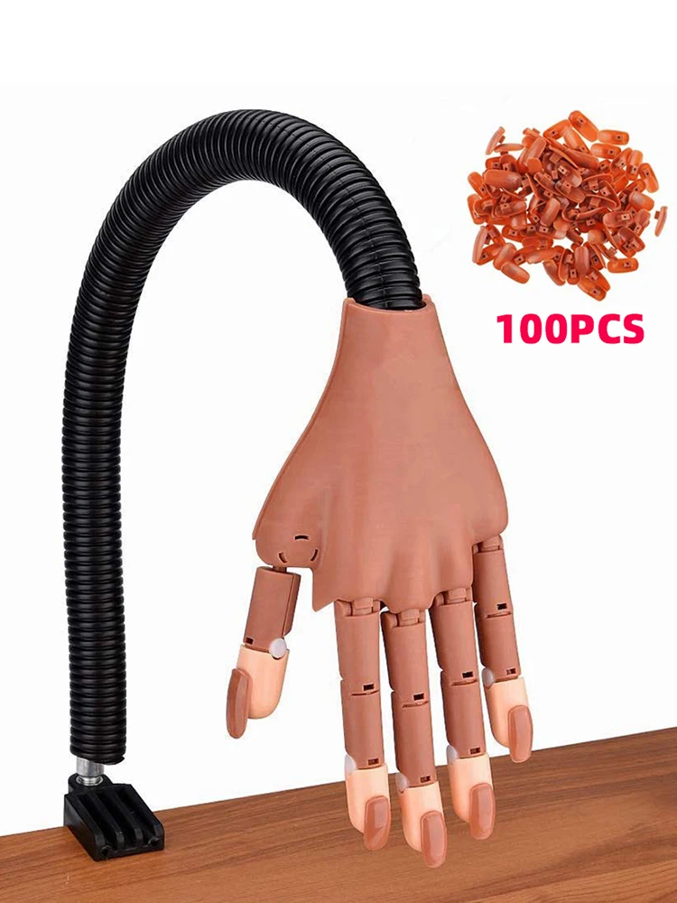 DianaBeauty Main d'entraînement pour ongles en acrylique, réglable et Flexible, entraînement des mains, main de manucure mobile avec 100 pointes d'ongles