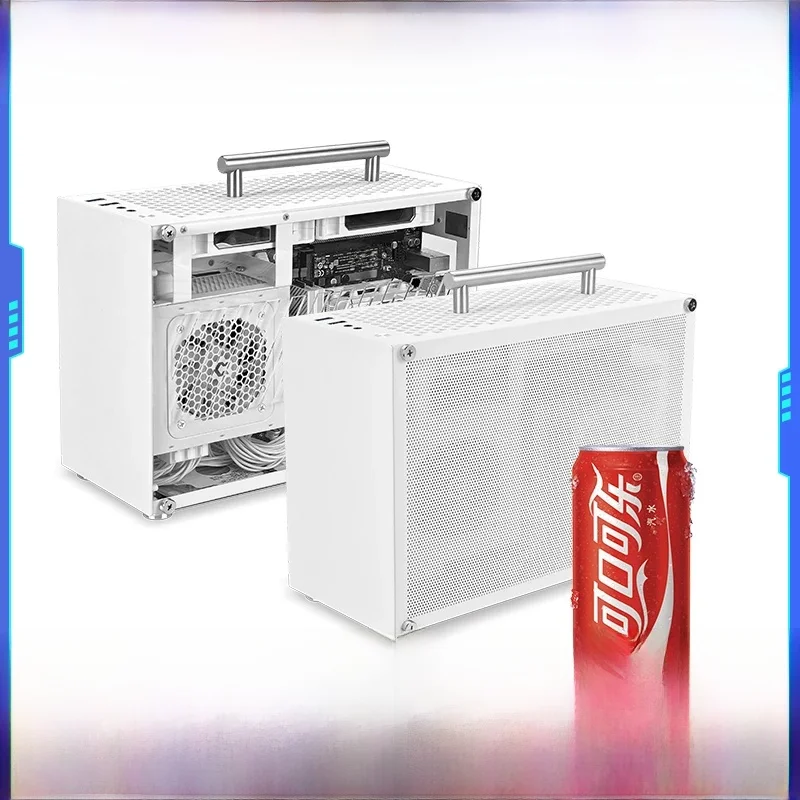 METALFISH T60 Mini ITX boîtier blanc 9L avec panneau latéral en acrylique ou maille et Support de poignée Portable SFX PSU/GPU 300mm/ventilateur 2*120mm