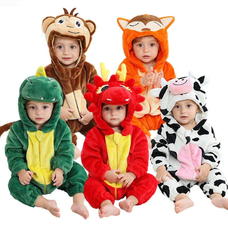 Présentation du MICHLEY carnaval dinosaure bébé barboteuses hiver flanelle enfant en bas âge vêtements pour bébés à capuche salopette combinaison Costume pour les enfants