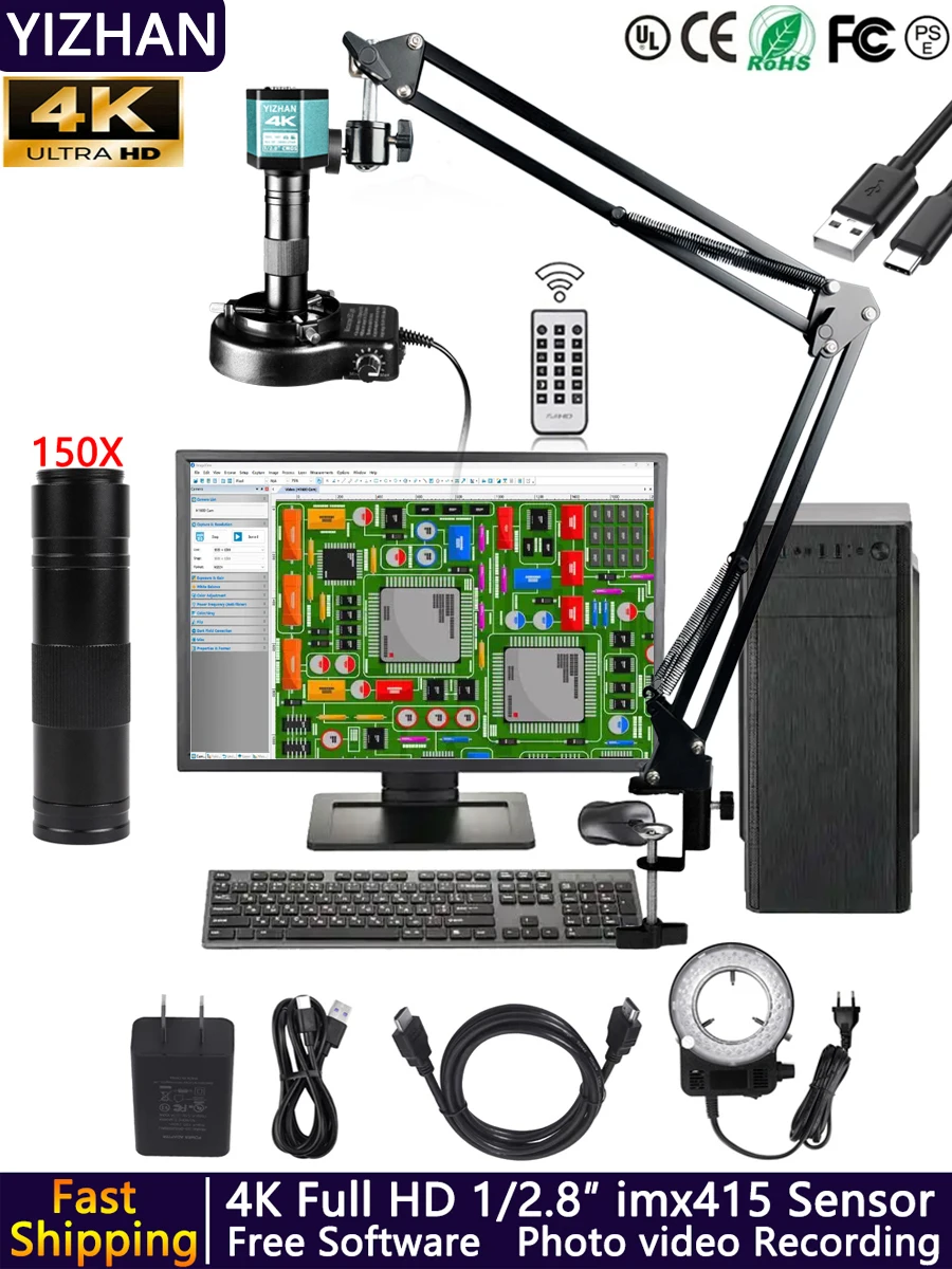 Microscope numérique 4K 48MP, pour appareils électroniques, caméras industrielles USB-C, Zoom HDMI 1-150X, objectif à monture C, soudage de téléphones Pcb, Expédition de Pologne