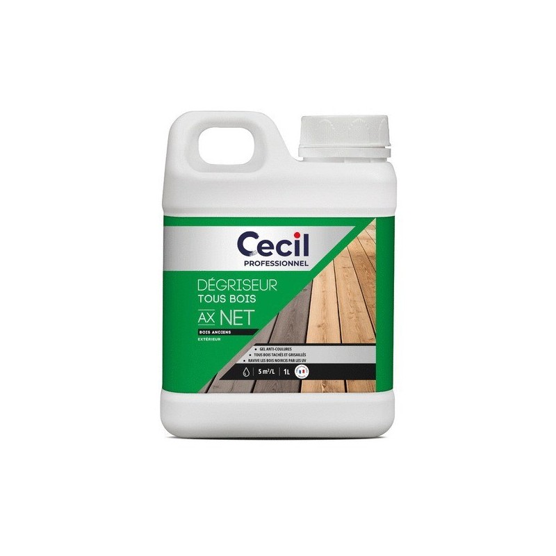 Nettoyant dégriseur ax net boiseries courante eau supports anciens ou tachés, ou humides extérieur 7 m²/l 1 bidon(s) de 1 litre(s) 1 litre(s) incolore de la marque CECIL PROFESSIONNEL est disponible chez 1 marchand partenaire. Comparez les offres et trouvez le meilleur prix en quelques secondes. À partir de 30,29 €.
