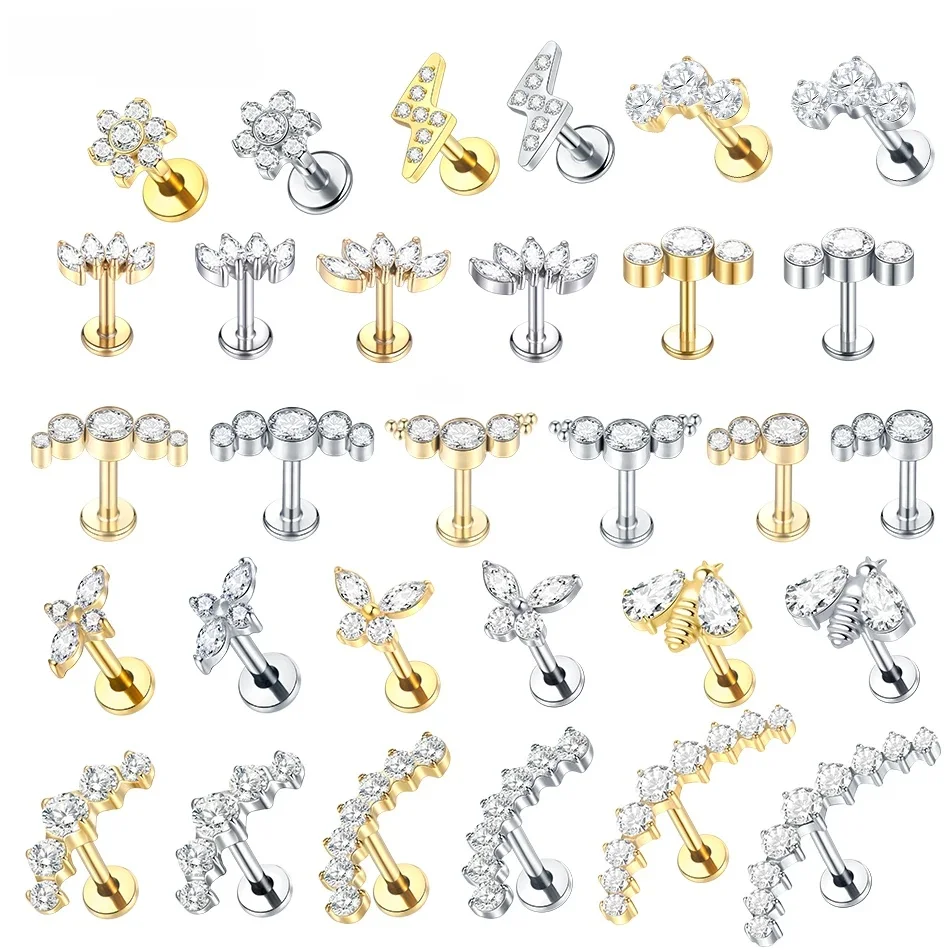 Questions fréquentes sur Piercing d'oreille en titane G23, Labret, boucles d'oreilles à dos plat, grappe de cristal, Helix Tragus, Pirsing, Cartilage, Lobe, bijoux de perçage, 1 pièce