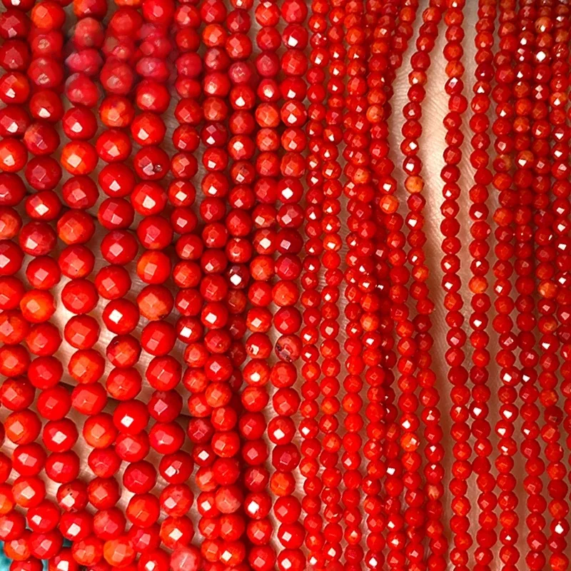 Pierre naturelle ronde à facettes, 2 3 4MM, corail rouge, perles d'espacement amples pour la fabrication de bijoux, boucles d'oreilles, Bracelets, breloques, accessoires