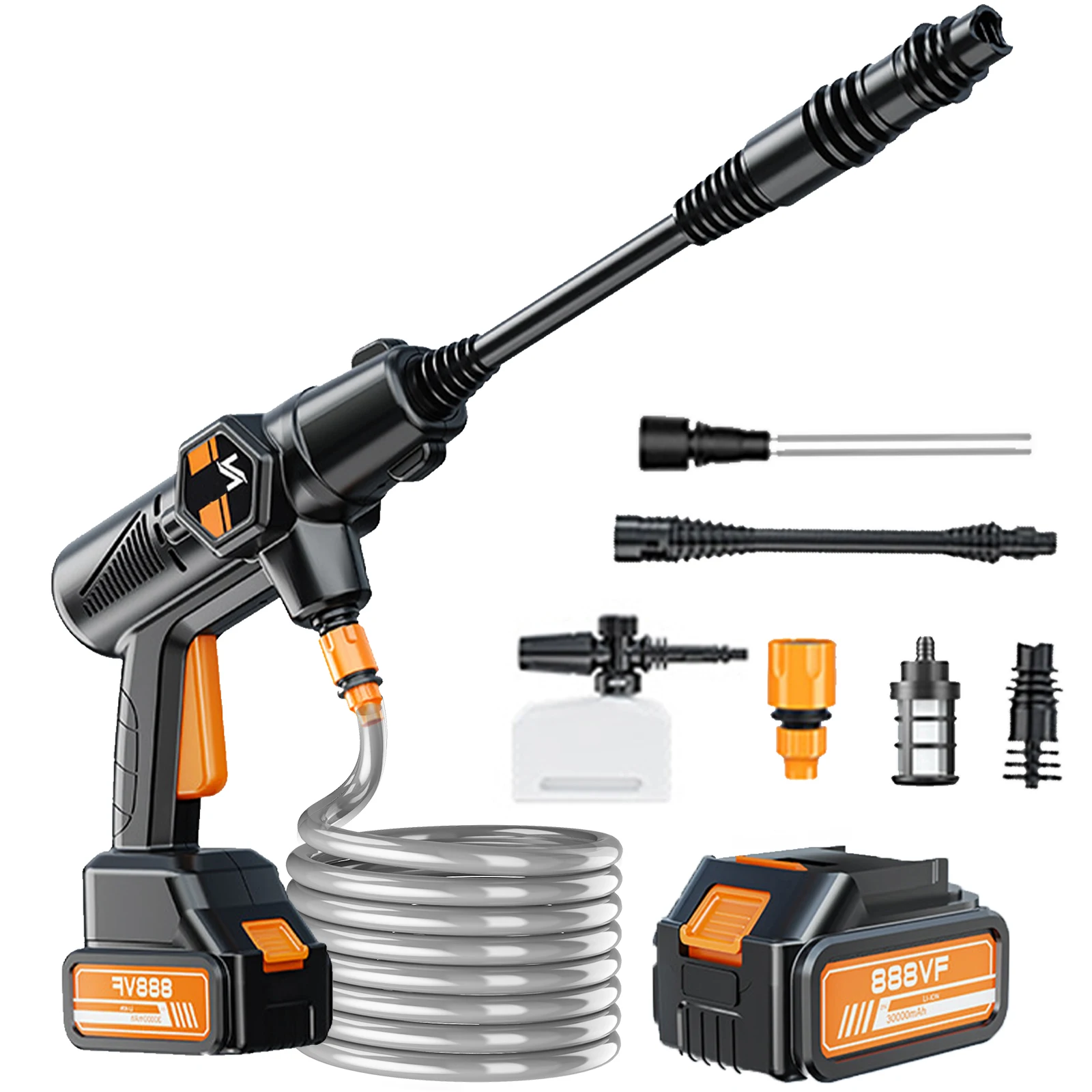 Questions fréquentes sur Pistolet de lavage de voiture électrique sans fil, haute pression, 100 bars, batterie 30000mAh, Machine de nettoyage portable multifonction pour maison et jardin automobile