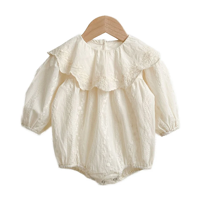 Printemps infantile bébé fille body coton impression combinaison large revers bébé fille barboteuse nouveau-né bébé à manches longues vêtements