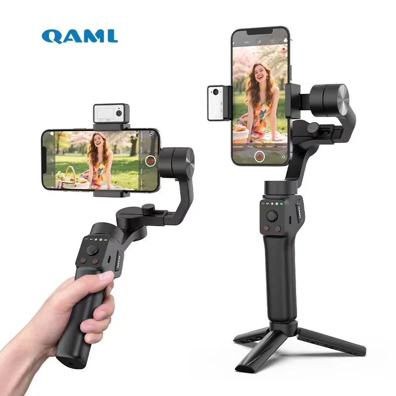 QAML S6 Contrôle des gestes à cardan 3 axes et lumière de remplissage pour vlog, flux et selfies lisses. Compact et durable, parfait pour le créateur — Meilleur prix 2026