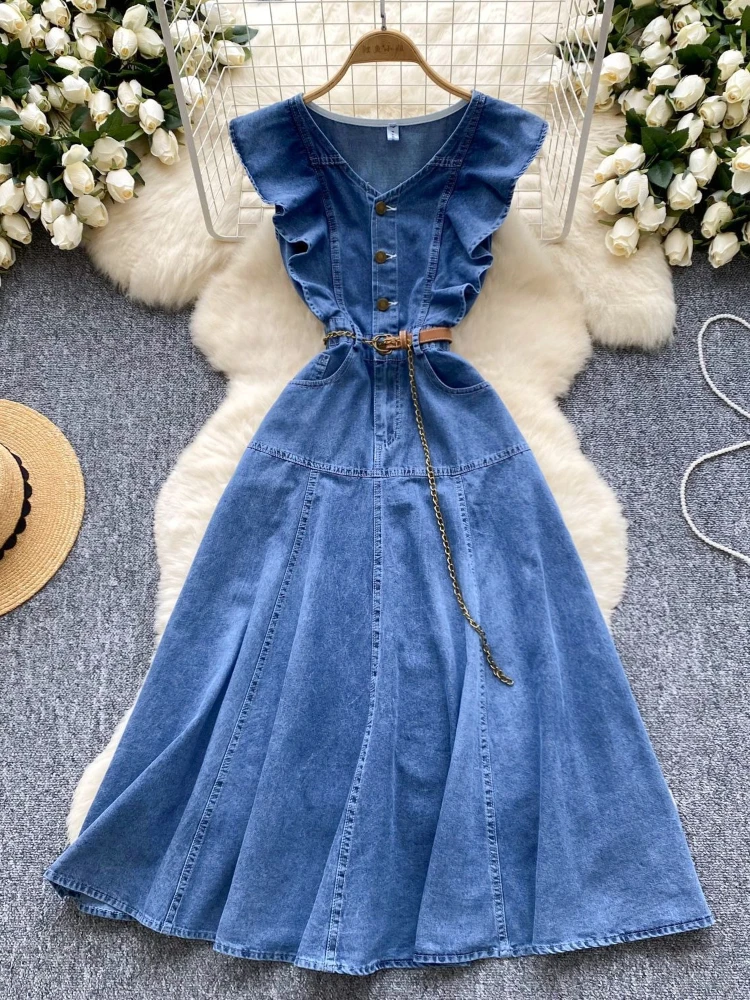 Nowsaa propose Robe longue en Denim pour femmes, ligne A, col en V, sans manches, épissure élégante, Y2k, Streetwear, volants, taille haute, coupe cintrée, travail chez 1 revendeurs. Utilisez notre comparateur pour le meilleur prix. Des 18,69 €.