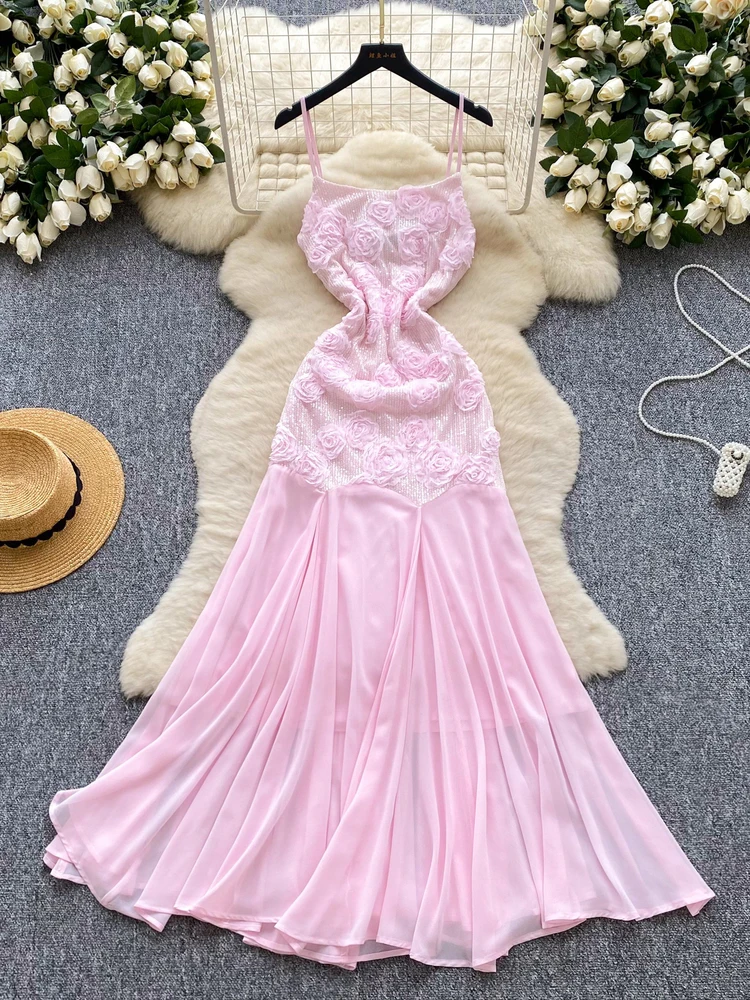 Le Robes de soirée formelles de luxe d'été femmes 3D fleur paillettes longue robe dame douce fée plissée broderie dentelle mousseline de soie robe vaut-il son prix en 2026 ?