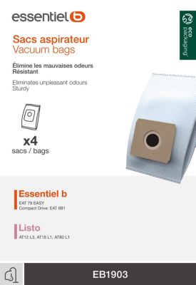 Comparez les prix de Sac aspirateur ESSENTIELB EB1903 et économisez sur votre achat. 1 offre disponible chez nos marchands partenaires. À partir de 9,99 €.