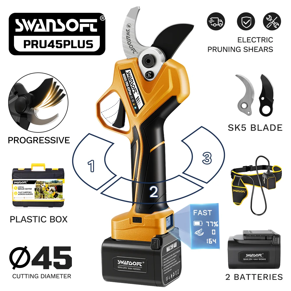 Ce que le Sécateur électrique Swansoft 45 mm, sans balais, coupe progressive, pour branches, outils de jardin, batterie 4 Ah, PRU45PLUS propose de mieux en 2026
